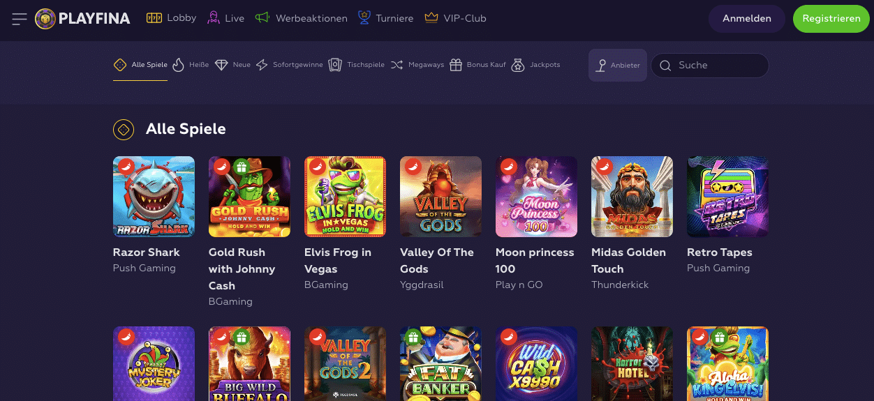 Playfina casino offers a wide range of exciting games to suit every player's preferences. Whether you enjoy classic table games, thrilling slots, or immersive live dealer games, Playfina has something for everyone.